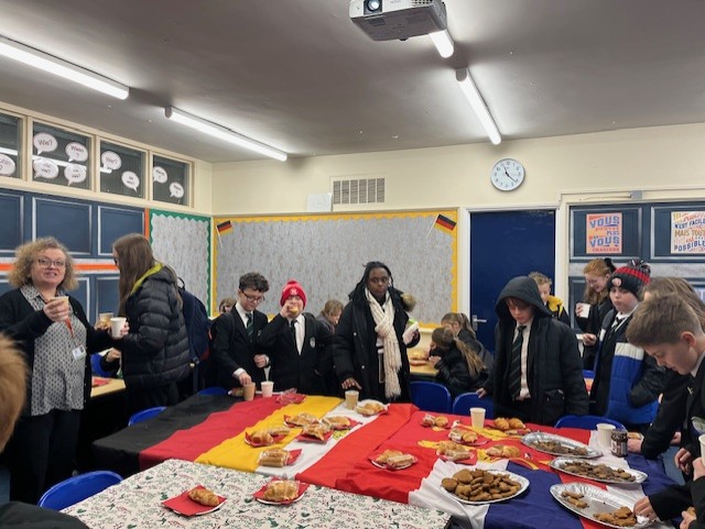 Mrs Marsh reports: “Today our MFL department hosted the Big Languages Breakfast at breaktime! Students enjoyed a wonderful spread of hot chocolate, croissants, and pain au chocolat while celebrating the joy of languages and culture. A huge thank you to Brigitta in Year 10, who treated us to delicious Hungarian ginger cookies called Mézeskalács. Wishing everyone a Happy Christmas – Joyeux Noël – Frohe Weihnachten from all of us in MFL!”